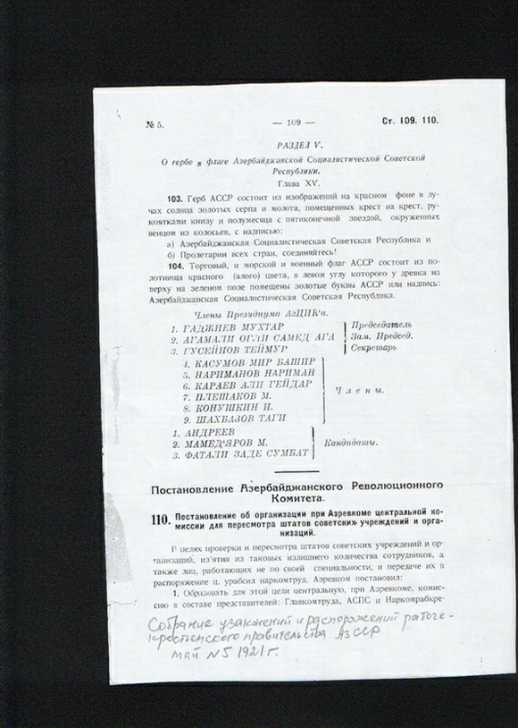 28 апреля 1920 года Азербайджанский революционный комитет (Азревком) провозгласил в Баку Азербайджанскую Социалистическую Советскую Республику.