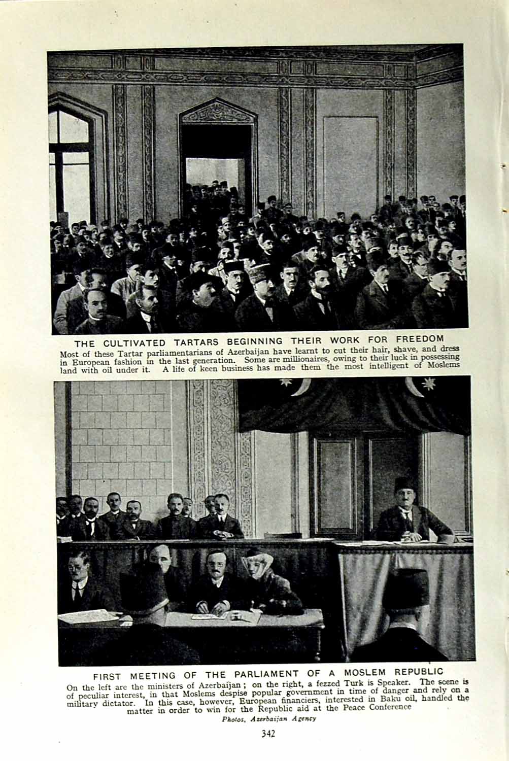 Первое заседание парламента Азербайджанской Демократической Республики, на котором вывешен трёхцветный флаг. 7 декабря 1918 года.