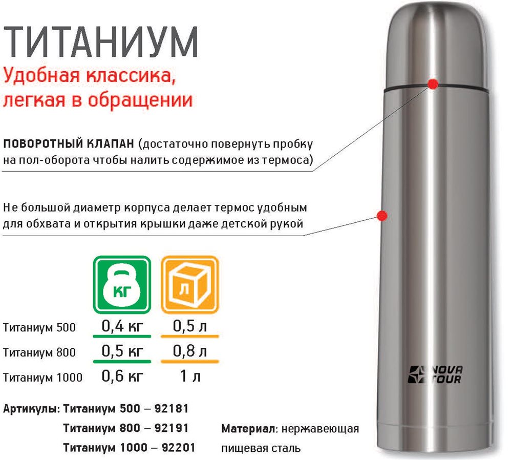 Выбрать, заказать и купить Термос Титаниум 1000 можно в интернет-магазине Форма-одежда. Описание с фотографиями и отзывы покупателей - все для вашего удобства выбора. В Москву, Московскую область (Подмосковье) его доставит курьер, а почтой России или другими компаниями отправляем в Санкт-Петербург (СПб), Астрахань, Барнаул, Белгород, Брянск, Великий Новгород, Владивосток, Волгоград, Вологду, Воронеж, Екатеринбург, Иваново, Ижевск, Йошкар-Олу, Иркутск, Казань, Казахстан, Калининград, Калугу, Кемерово, Киров, Краснодар, Красноярск, Курск, Липецк, Магадан, Магнитогорск, Набережные Челны, Нижний Новгород, Новокузнецк, Новороссийск, Новосибирск, Норильск, Омск, Орел, Оренбург, Пензу, Пермь, Псков, Ростов-на-Дону, Рязань, Самару, Саратов, Севастополь, Симферополь, Смоленск, Сочи, Ставрополь, Тверь, Тольятти, Томск, Тулу, Тюмень, Улан-Удэ, Ульяновск, Уфу, Хабаровск, Чебоксары, Челябинск, Якутск, Ялту, Ярославль и другие регионы. Также возможна доставка в страны ближнего и дальнего зарубежья.
