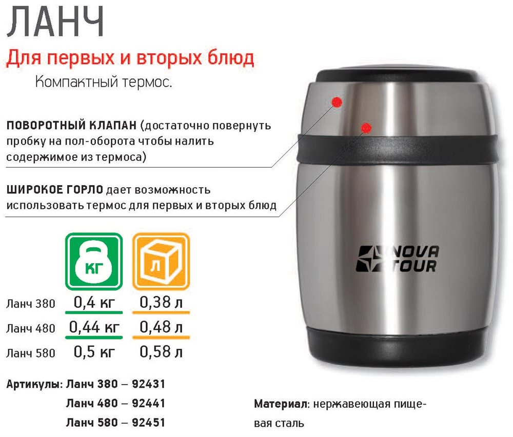 Выбрать, заказать и купить Термос Ланч 380 можно в интернет-магазине Форма-одежда. Описание с фотографиями и отзывы покупателей - все для вашего удобства выбора. В Москву, Московскую область (Подмосковье) его доставит курьер, а почтой России или другими компаниями отправляем в Санкт-Петербург (СПб), Астрахань, Барнаул, Белгород, Брянск, Великий Новгород, Владивосток, Волгоград, Вологду, Воронеж, Екатеринбург, Иваново, Ижевск, Йошкар-Олу, Иркутск, Казань, Казахстан, Калининград, Калугу, Кемерово, Киров, Краснодар, Красноярск, Курск, Липецк, Магадан, Магнитогорск, Набережные Челны, Нижний Новгород, Новокузнецк, Новороссийск, Новосибирск, Норильск, Омск, Орел, Оренбург, Пензу, Пермь, Псков, Ростов-на-Дону, Рязань, Самару, Саратов, Севастополь, Симферополь, Смоленск, Сочи, Ставрополь, Тверь, Тольятти, Томск, Тулу, Тюмень, Улан-Удэ, Ульяновск, Уфу, Хабаровск, Чебоксары, Челябинск, Якутск, Ялту, Ярославль и другие регионы. Также возможна доставка в страны ближнего и дальнего зарубежья.