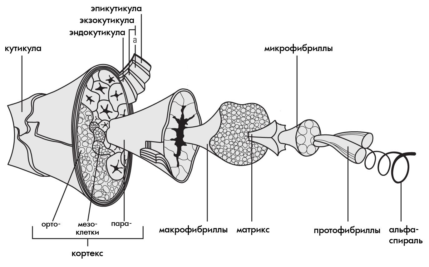 Отдельно стоит остановиться на способности шерстяных волокон адсорбировать молекулы воды. Пар проникает через поры кутикулы (чешуйчатого слоя) во внутренний корковый слой, состоящий из веретенообразных клеток. В их состав главным образом входят гидрофильные молекулы белка – каротина. Там молекулы воды образуют водородные связи с отдельными участками белка, понижая свою энергию. Избыточная энергия выделяется в виде тепла.