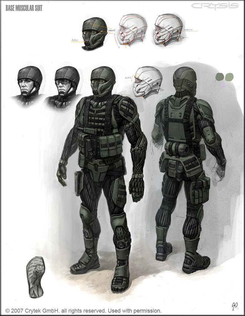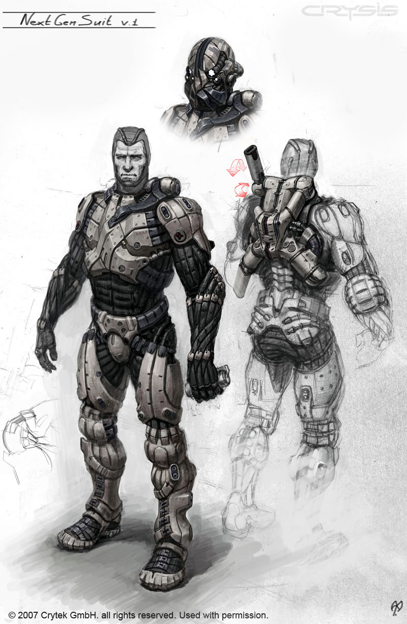 Идея создания и дизайн нанокостюма, по словам главного игрового дизайнера Бернда Димера (англ. Bernd Diemer), были вдохновлены американской военной программой United States Future Force Warrior 2020[31]. Эрик Лагель (англ. Eric Lagel), сотрудник компании Crytek, говорит, что нанокостюм — «это одна из главных „фишек“ Crysis, и мы просто не могли не включить его в мультиплеер. Нанокостюм — это всего лишь оружие, которого не было в других играх»[32].