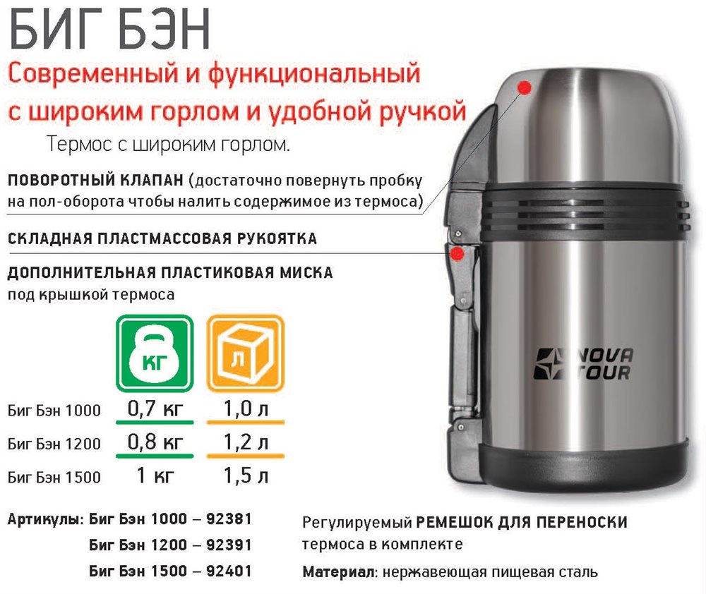 Выбрать, заказать и купить Термос из нержавеющей стали Биг Бэн 1200 можно в интернет-магазине Форма-одежда. Описание с фотографиями и отзывы покупателей - все для вашего удобства выбора. В Москву, Московскую область (Подмосковье) его доставит курьер, а почтой России или другими компаниями отправляем в Санкт-Петербург (СПб), Астрахань, Барнаул, Белгород, Брянск, Великий Новгород, Владивосток, Волгоград, Вологду, Воронеж, Екатеринбург, Иваново, Ижевск, Йошкар-Олу, Иркутск, Казань, Казахстан, Калининград, Калугу, Кемерово, Киров, Краснодар, Красноярск, Курск, Липецк, Магадан, Магнитогорск, Набережные Челны, Нижний Новгород, Новокузнецк, Новороссийск, Новосибирск, Норильск, Омск, Орел, Оренбург, Пензу, Пермь, Псков, Ростов-на-Дону, Рязань, Самару, Саратов, Севастополь, Симферополь, Смоленск, Сочи, Ставрополь, Тверь, Тольятти, Томск, Тулу, Тюмень, Улан-Удэ, Ульяновск, Уфу, Хабаровск, Чебоксары, Челябинск, Якутск, Ялту, Ярославль и другие регионы. Также возможна доставка в страны ближнего и дальнего зарубежья.
