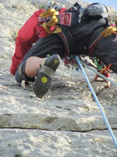 Во-первых, это скальные туфли. Туфли стоит брать те, к которым вы привыкли и лучше две пары, на случай, если вы решите пролезть высокий мультипитч или заняться DWS.