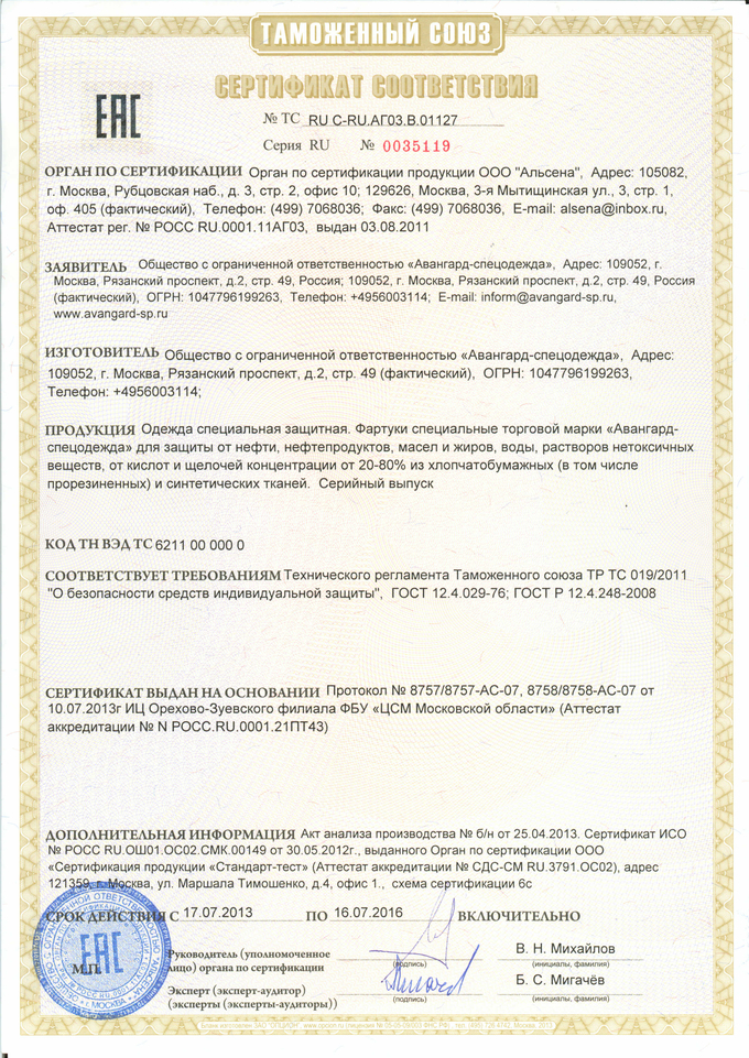 *под заказ (цену уточняйте у менеджера) - цельнокроенный нагрудник Материал: тентованная ткань Размер: универсальный Длина: 120 см ГОСТ 12.4.029-76