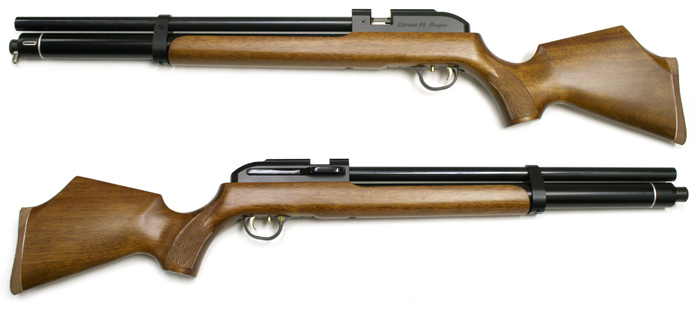 Современная серийная высокомощная охотничья пневматика, такая, как корейская винтовка .50 Career Dragon Slayer, имеет калибр вплоть до 12,7 мм, дульную энергию порядка сотен джоулей и пригодна для охоты на крупную дичь. В России такое пневматическое оружие находится вне закона.